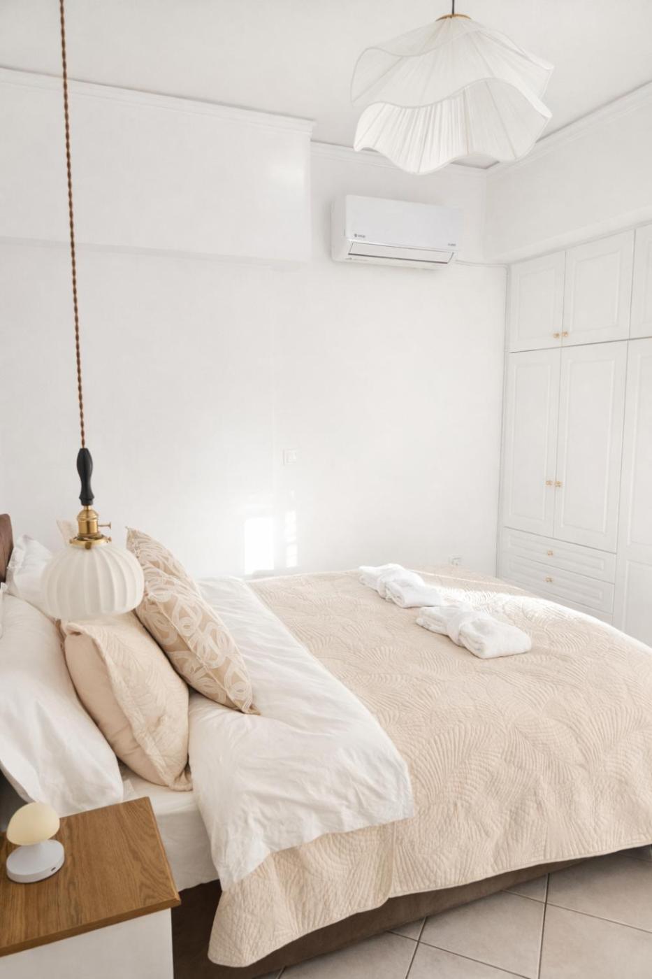 Two-Bedroom Apartment. Boasting a private entrance, this air-conditioned apartment features 1 living room, 2 separate bedrooms and 1 bathroom with a walk-in shower and a bidet. In the well-fitted kitchen, guests will find a stovetop, a refrigerator, kitchenware and an oven. The spacious apartment features a washing machine, a tea and coffee maker, a seating area as well as a terrace with garden views. The unit has 3 beds.