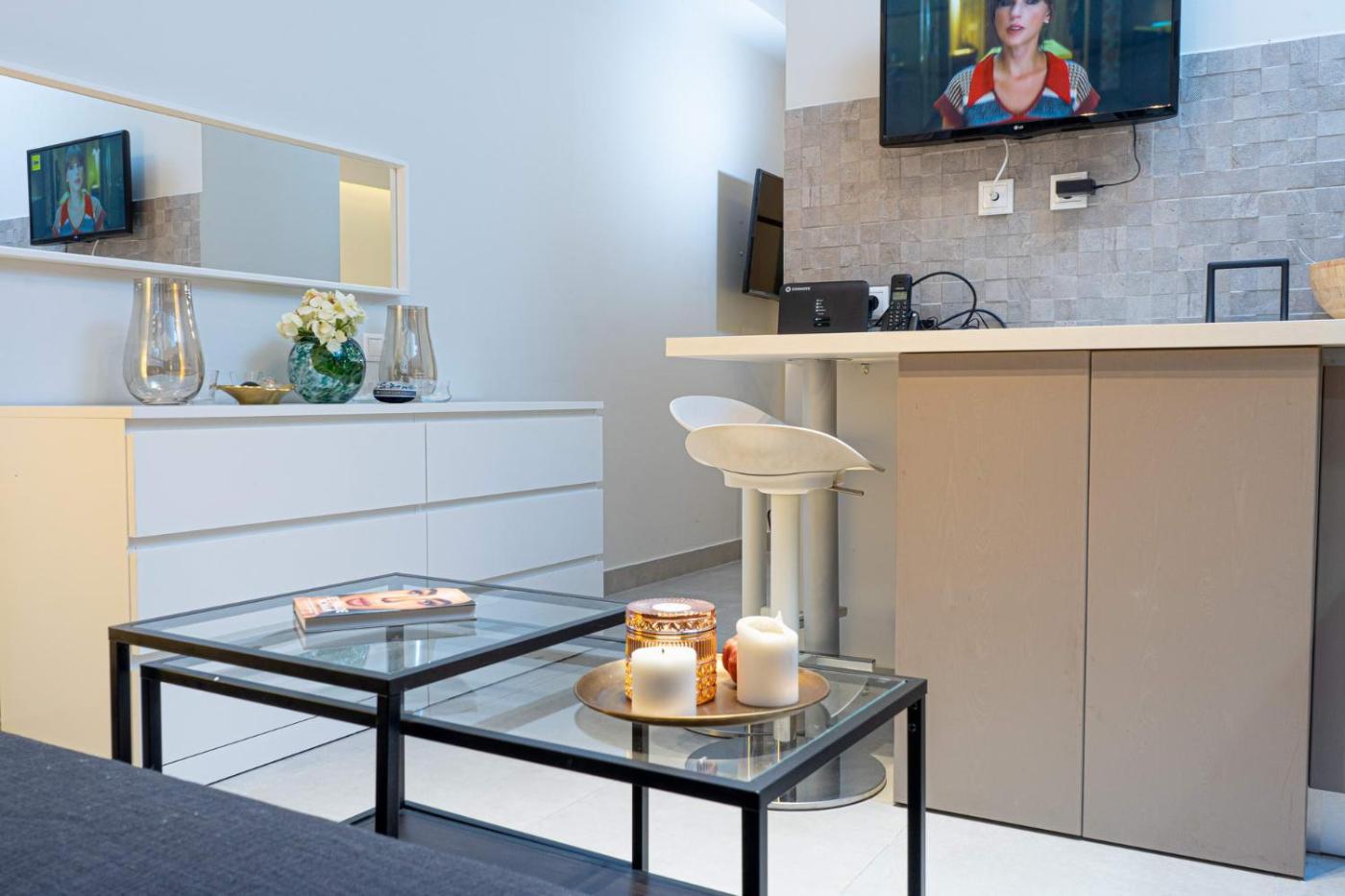 One-Bedroom Apartment. The air-conditioned apartment has 1 bedroom, 1 bathroom and a kitchen. The apartments kitchen is available for cooking and storing food. This apartment features a washing machine, heating and a flat-screen TV. The unit has 2 beds.