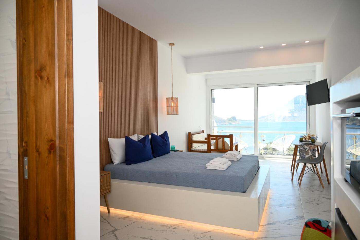 One-Bedroom Apartment. This air-conditioned apartment comes with 1 living room, 1 separate bedroom and 1 bathroom with a shower. Meals can be prepared in the kitchen, which features a stovetop, a refrigerator, kitchenware and an oven. Boasting a terrace with sea views, this apartment also features a washing machine and a flat-screen TV with streaming services. The unit has 2 beds. ;