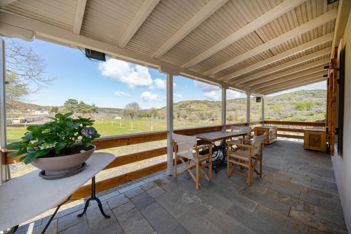 Two-Bedroom House. This holiday home provides a fireplace. Featuring a private entrance, this holiday home also comprises 1 living room, 2 separate bedrooms and 1 bathroom with a walk-in shower. Guests will find a stovetop, a refrigerator, kitchenware and an oven in the fully equipped kitchen. The holiday home also provides guests with a barbecue. The unit features a dining area, garden views, a terrace and winechampagne is featured for guests. The unit offers 5 beds.