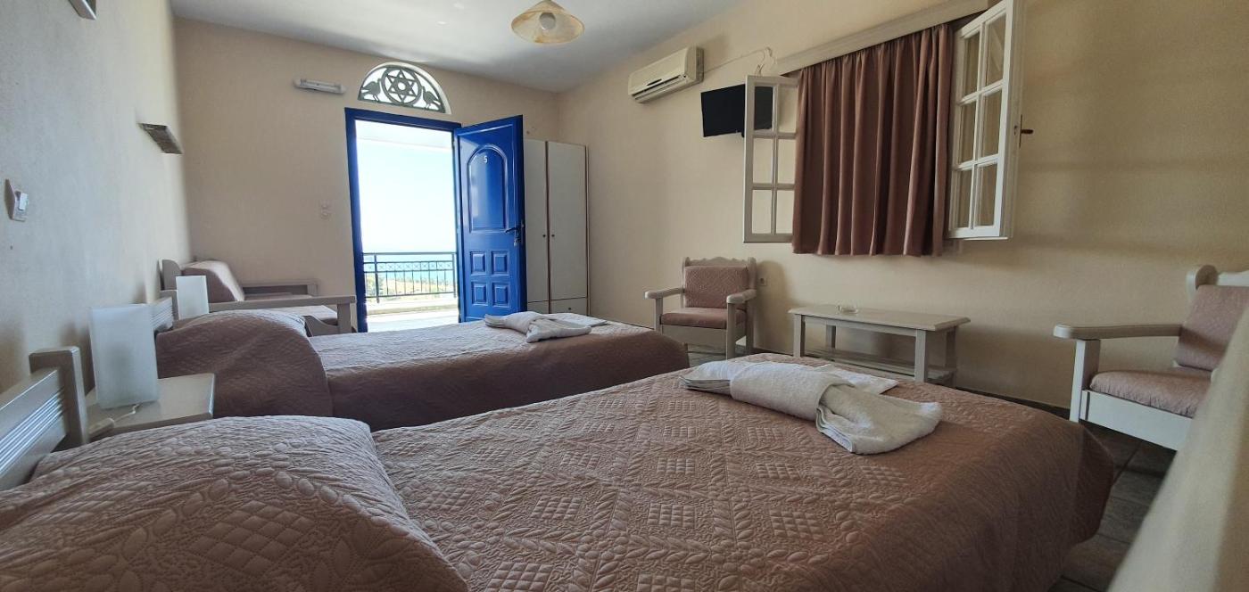 Budget Studio (3 Adults). Opening out to a common terrace with panoramic views over the Aegean Sea, this studio features a seating area and a kitchenette with dining area. It offers: -a fridge, an electric oven and a toaster -air conditioning -a TV -a hairdryer. ;