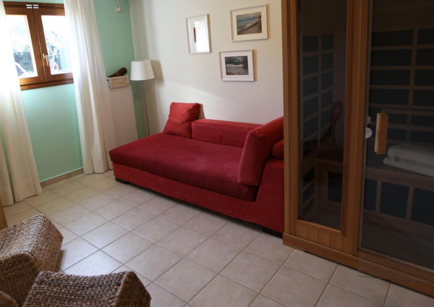 Suite with Sauna. Family suite with separate bedroom. It also has a sauna, fully equipped kitchen, living room, dining room, extra large terrace, air conditioning and a sofa with orthopedic mattress.