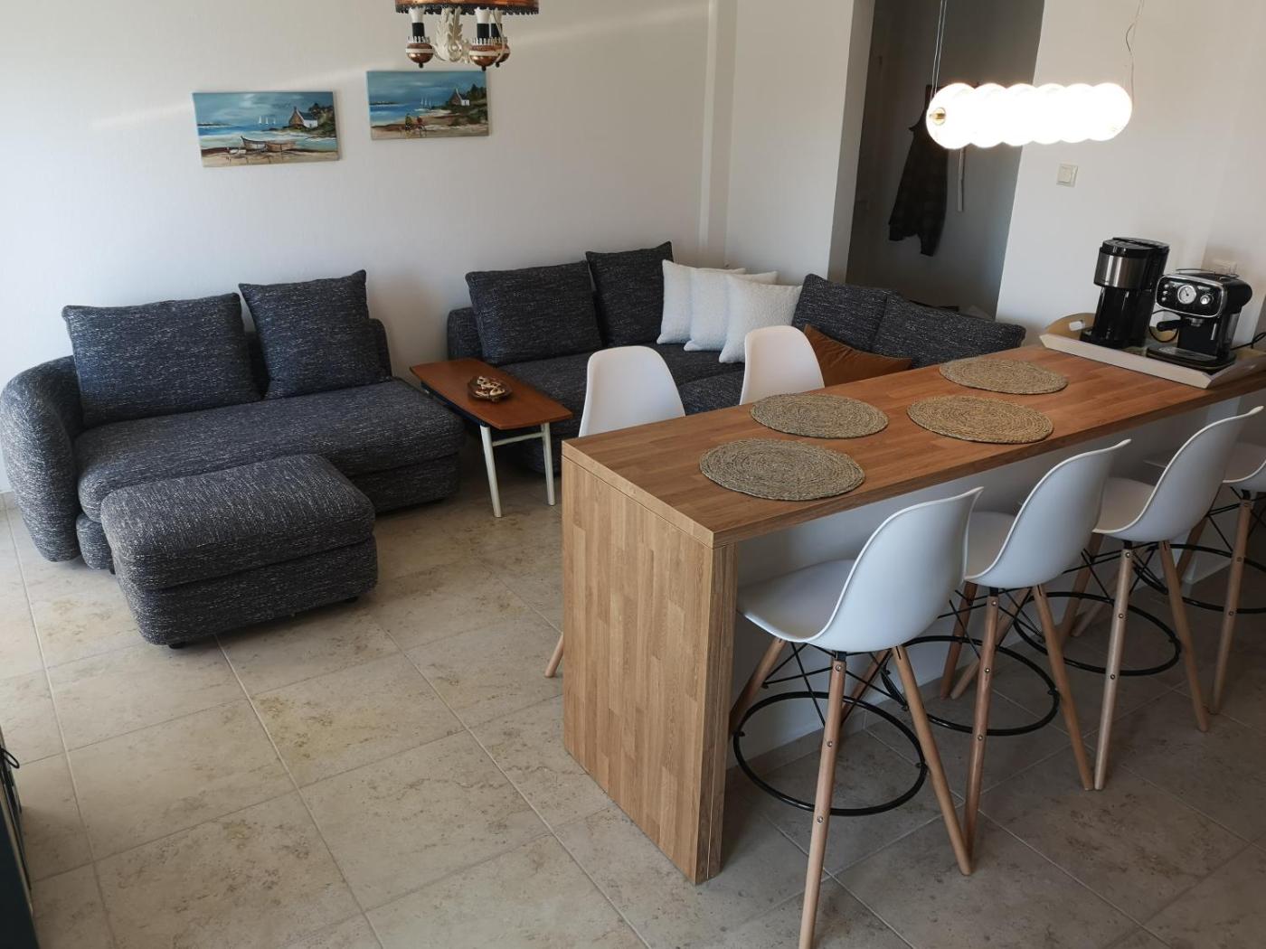 Two-Bedroom Apartment. The fireplace is the standout feature of this apartment. The well-fitted kitchen has a stovetop, a refrigerator, a dishwasher and kitchenware. The spacious air-conditioned apartment features a flat-screen TV, a washing machine, a tea and coffee maker, a seating area as well as sea views. The unit has 2 beds.