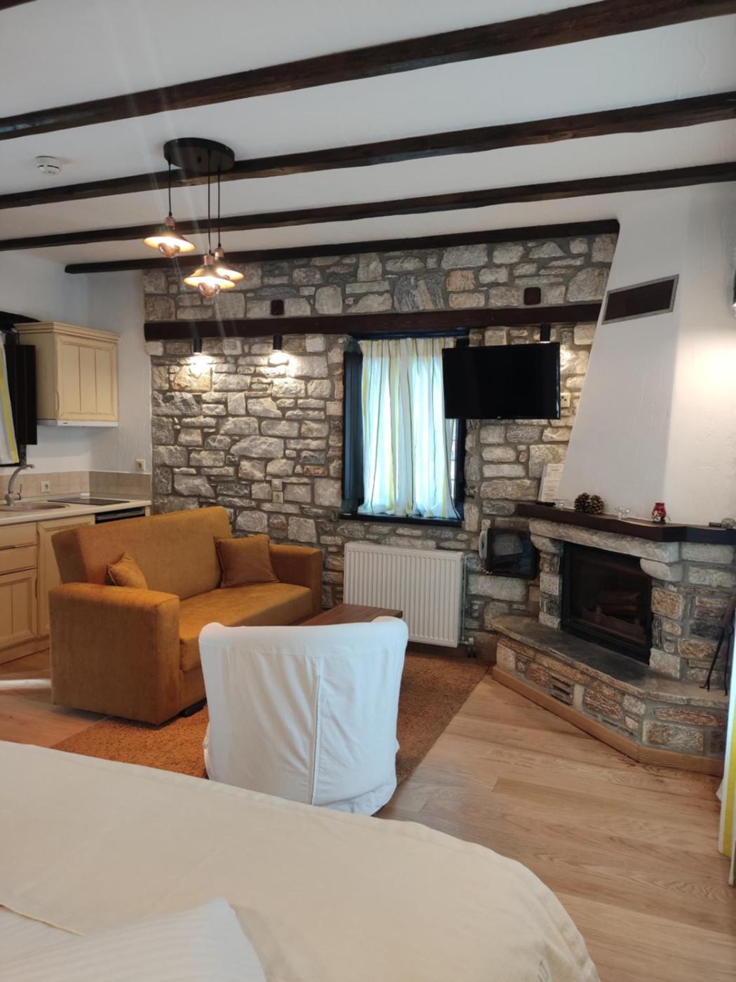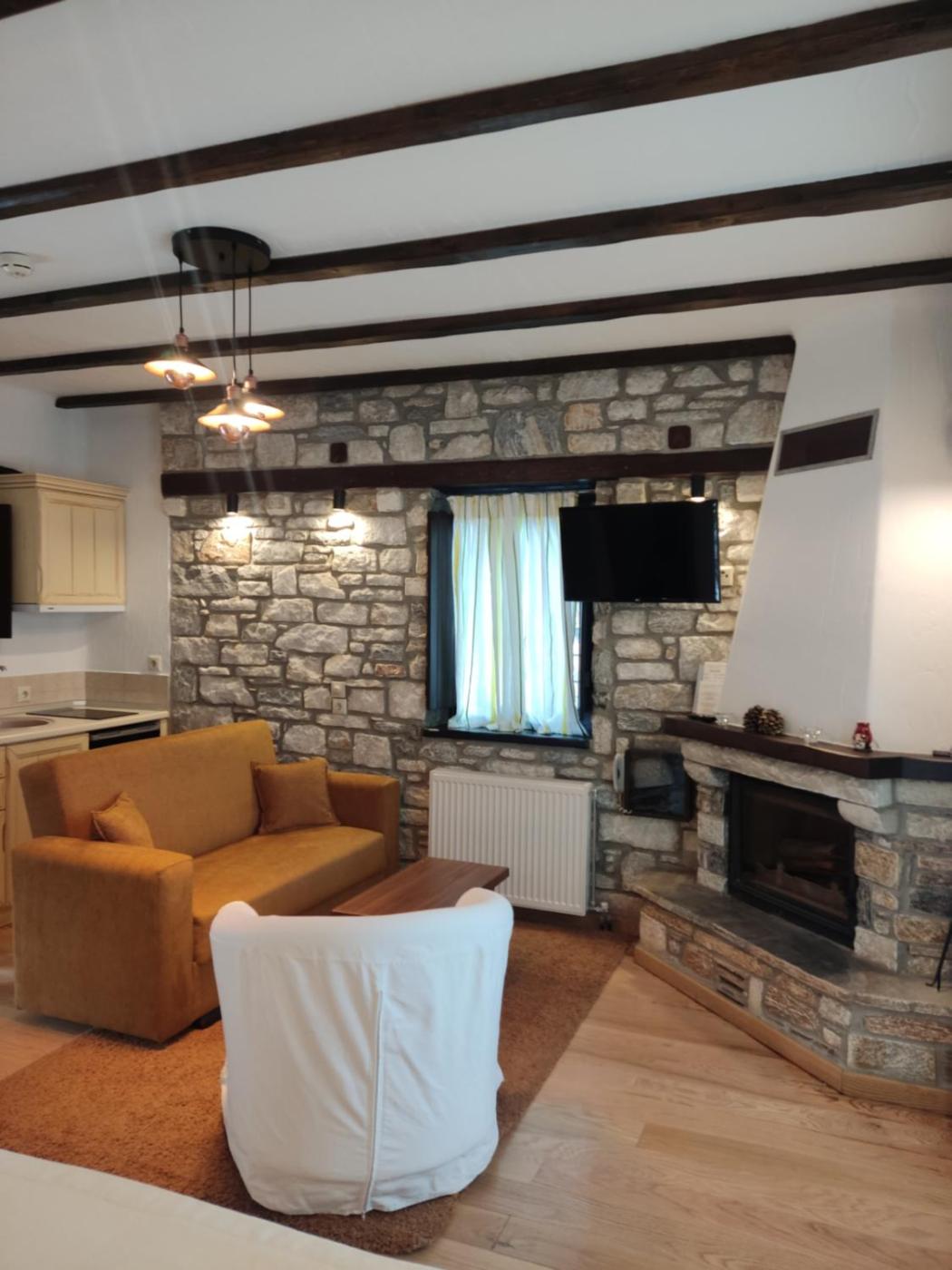 Deluxe Studio. Enjoying panoramic views of the Aegean Sea and the mountain from its furnished balcony, this modernly decorated studio has a seating area with fireplace. It features: -air conditioning -Coco Mat anatomic mattresses -bathroom with hydromassage shower cabin -free Wi-Fi. Please note that the use of the fireplace is included in the room rate. ;