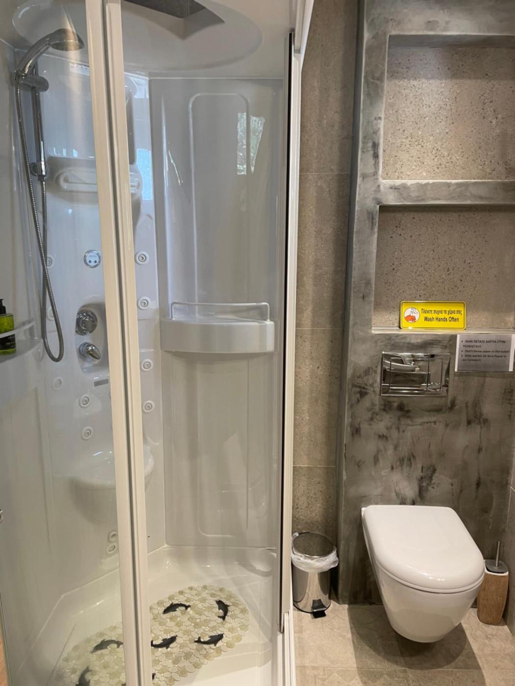 Aiolos Suite. This suites standout features are the pool with a view, hot tub and spa bath. Featuring a private entrance, this air-conditioned suite consists of 1 living room, 1 separate bedroom and 1 bathroom with a shower and a hairdryer. Meals can be prepared in the well-fitted kitchen, which is equipped with a stovetop, a refrigerator, kitchenware and an oven. Boasting a terrace with sea views, this suite also provides soundproof walls and a flat-screen TV. The unit offers 2 beds. ;